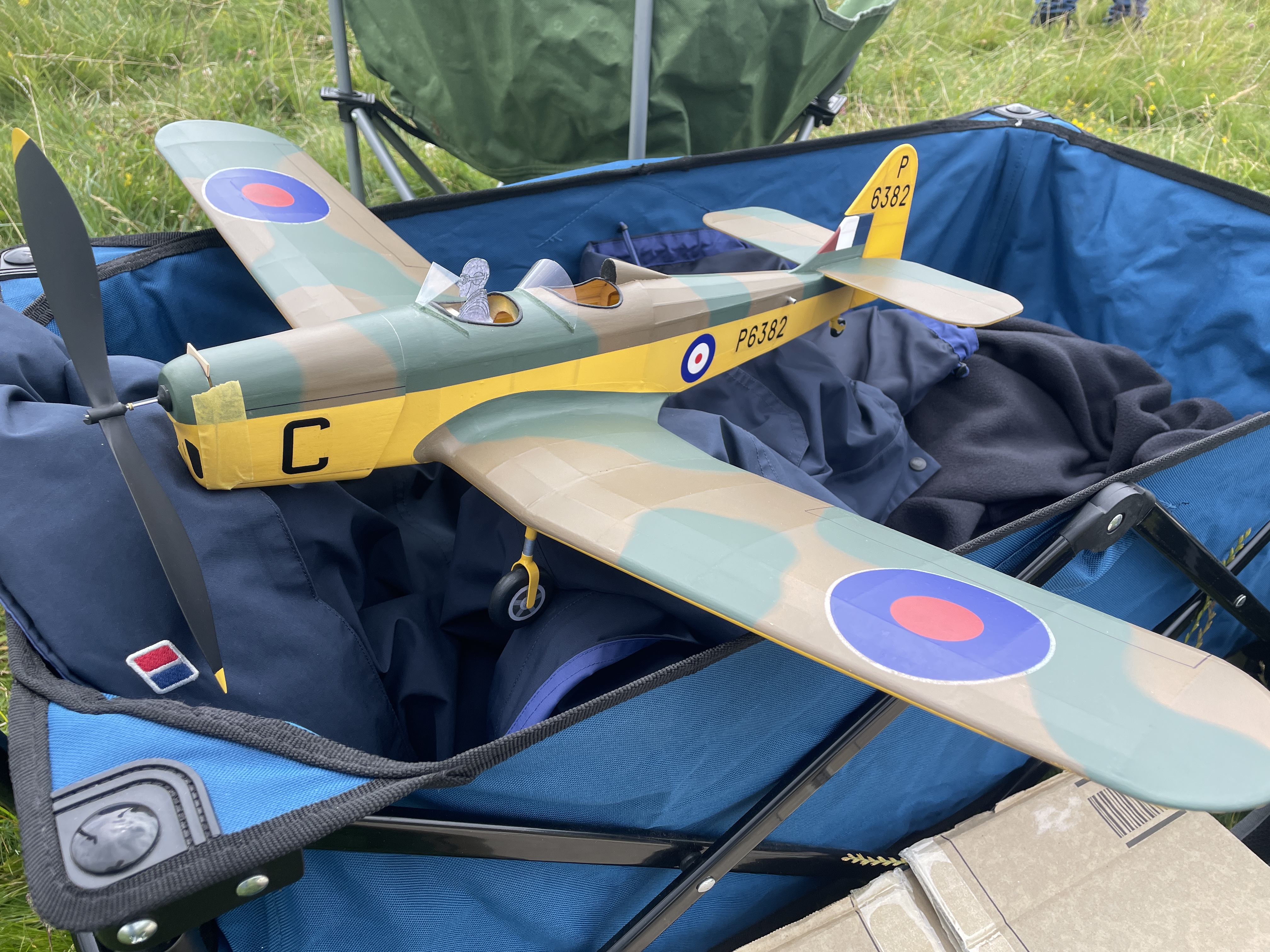 Ivan Taylor had entered a couple of models, a Heinkel He51 and a P51 Mustang. The I/C powered Heinkel put in some very good long flights and showed off it’s impressive glide to effect but a tightening turn under power dropped its scores. His rubber powered Mustang fared much better claiming 6th spot. Andy Blackburn split Ivan’s models with his newly completed rubber Miles Magister. This is from the Mike Midkiff kit and is a beautiful flyer with just the right sit in the air, it could be one to watch in later competitions as Andy refines it even further. The competition proved to be very close with 2nd to 7th covered by just 75 points