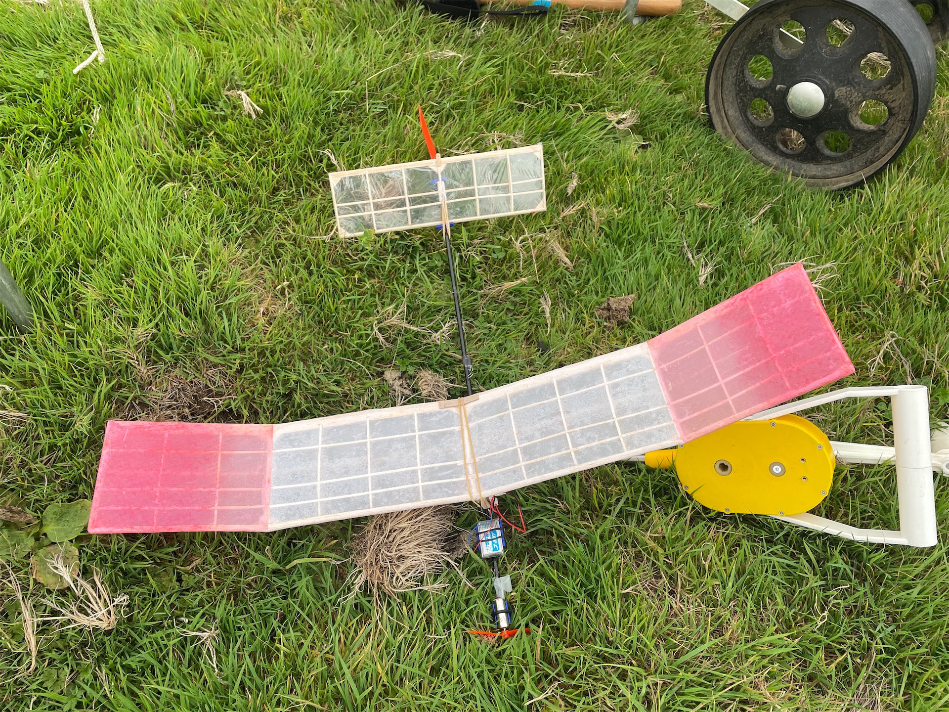 Aside from the competitions the fun-fly part of these events is very much part of the meeting. Charlie Jeffreys models were notable amung those. Star of the show was his lost Vic Smeed design called the Shove Ha’penny. This is a large 50” or so pusher type FF model that Vic Smeed designed in 1950 as a fore runner to the Pushy Cat design but no plan exists for it. Charlie with the help of Leigh Richardson have recreated the model from just two photographs using model building techniques Vic may have used re drawing the design to create a plan. The model flies beautifully and is a credit to both Vic Smeed’s wonderful designs and Charlie’s building and trimming skills. The design will feature in a future Aeromodeller as a free plan